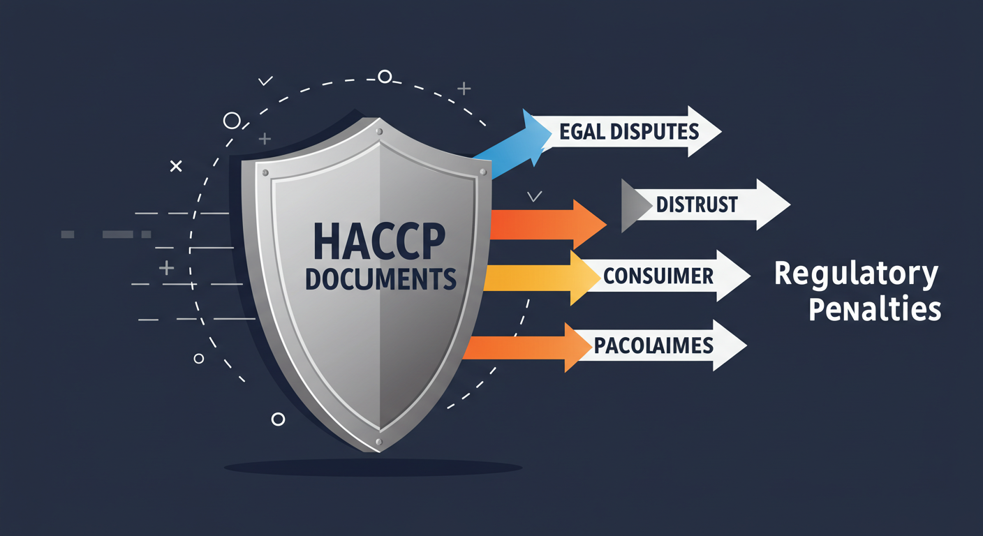 [이미지 1] HACCP 문서는 법적 분쟁, 소비자 불신 등 외부 위협으로부터 우리 회사를 지키는 든든한 방패입니다.