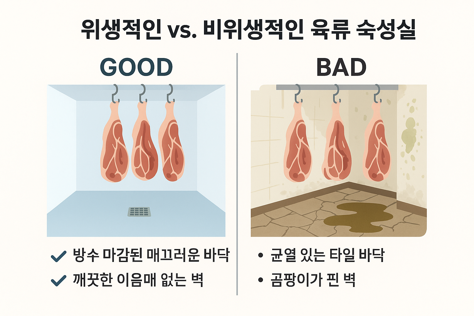 위생적인 숙성실 vs 비위생적인 숙성실 비교 인포그래픽 [D&H 전문가 해석]