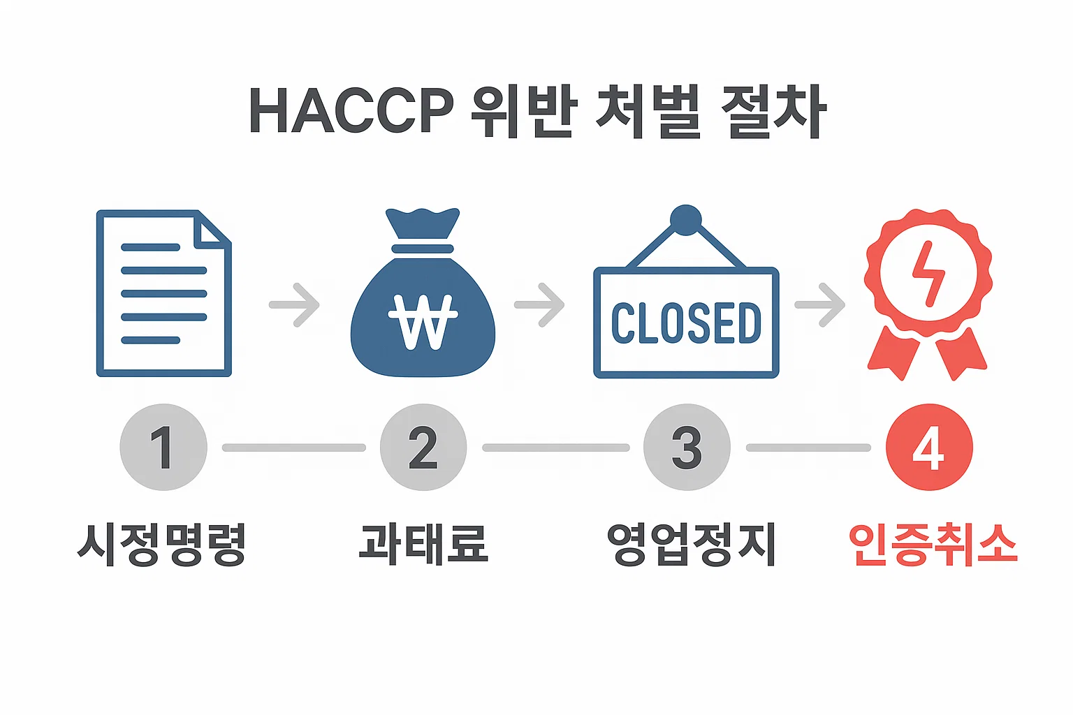 HACCP 위반 시 행정처분은 '시정명령'에서 시작됩니다. "고치면 되겠지"라고 안일하게 생각하기 쉽지만, 이는 규제 당국이 주는 '마지막 기회'입니다. 시정명령에 제대로 대응하지 못하면 영업정지, 인증 취소까지 이어질 수 있습니다.