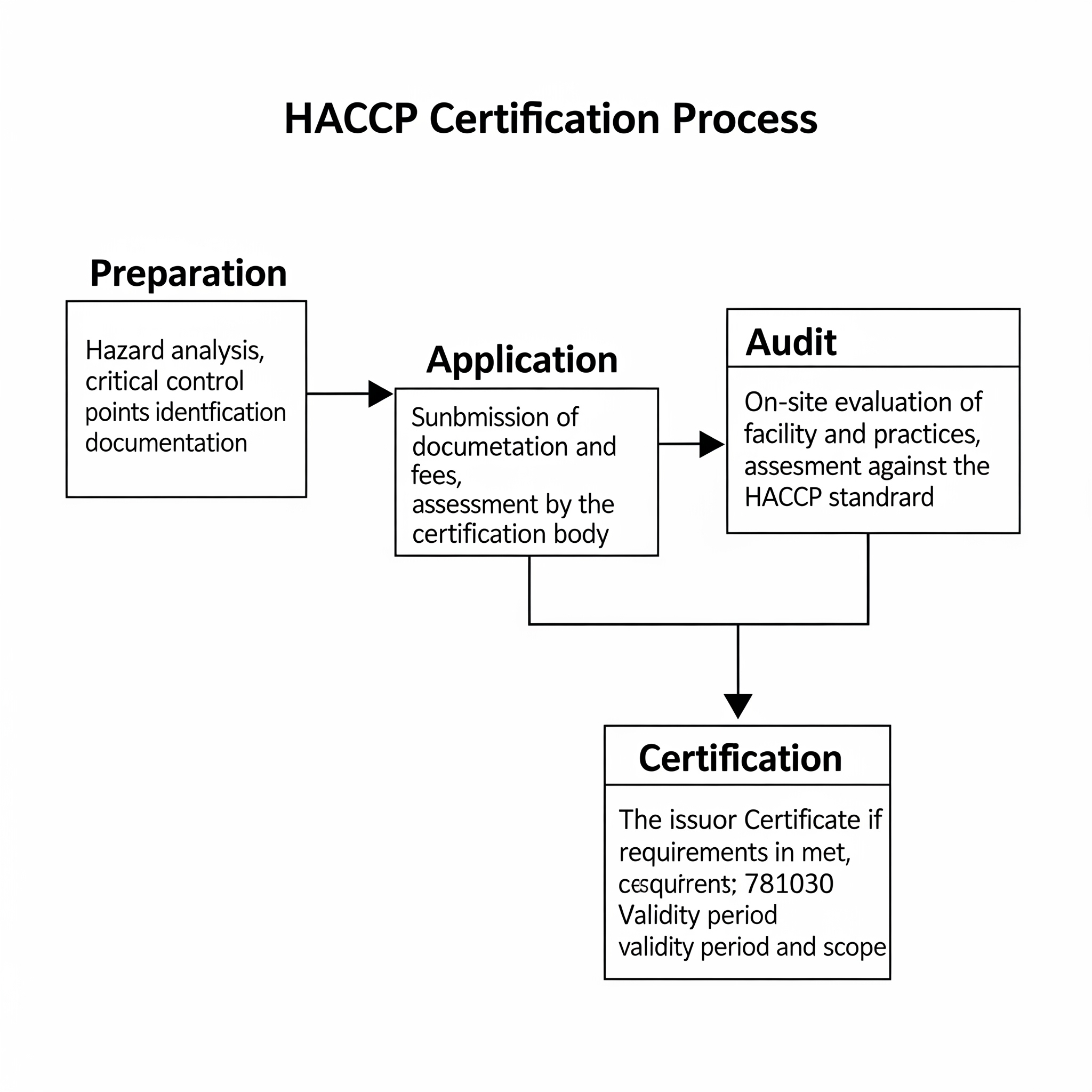 HACCP 인증을 받기 위한 절차는 크게 '준비 - 신청 - 심사 - 인증' 단계로 나눌 수 있습니다.