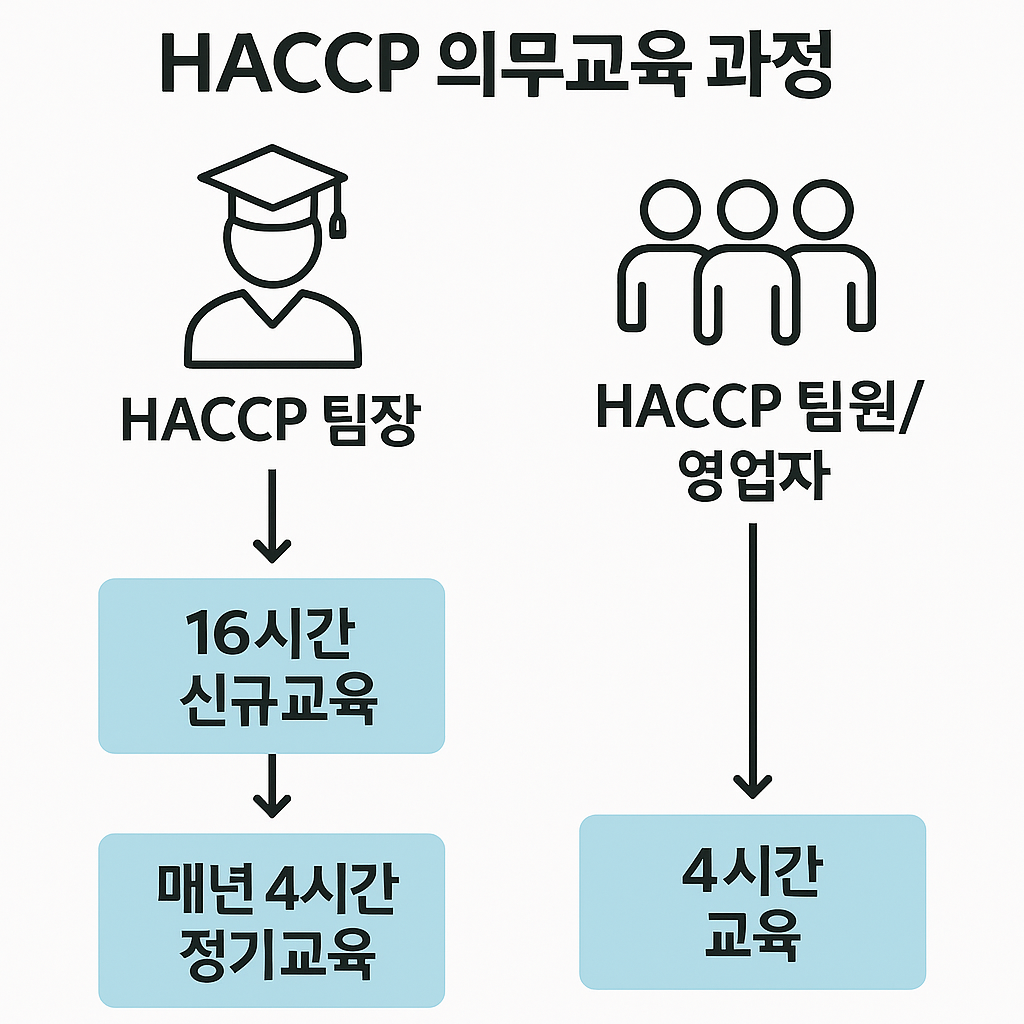 해썹 인증을 받고 유지하려면, 법에서 정한 교육을 꼭 이수해야 합니다. 특히 가게의 위생을 총괄하는 'HACCP 팀장'은 16시간의 신규 교육과 매년 4시간의 보수 교육을 필수로 받아야 하죠.